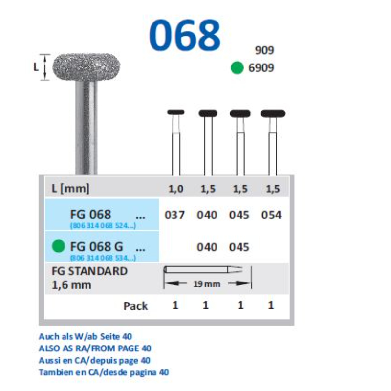 HORICO DIAMOND ROUND WHEEL BUR 068 DIAM 040 COARSE GRIT