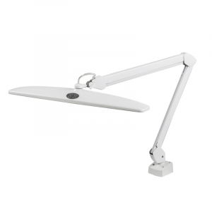 WORKING LAMP Professional working lamp assuring a wide lighting view over the operating area. The lamp features two extremely powerful LED SMD bars for pure white light. Each LED bar can be operated individually (providing for simulteaeous or individual operation) and the brightness level can be adjusted electronically to achieve the most suitable working condition. The extensible double-joint arm allows for ideal position of the lamp thus avoiding any shades. The lamp can be permanently fixed on the bench or hung on the wall by means of the available accessories to meet any space requirements. LED light emission is white, 6.400° Kelvin, very similar to natural light.