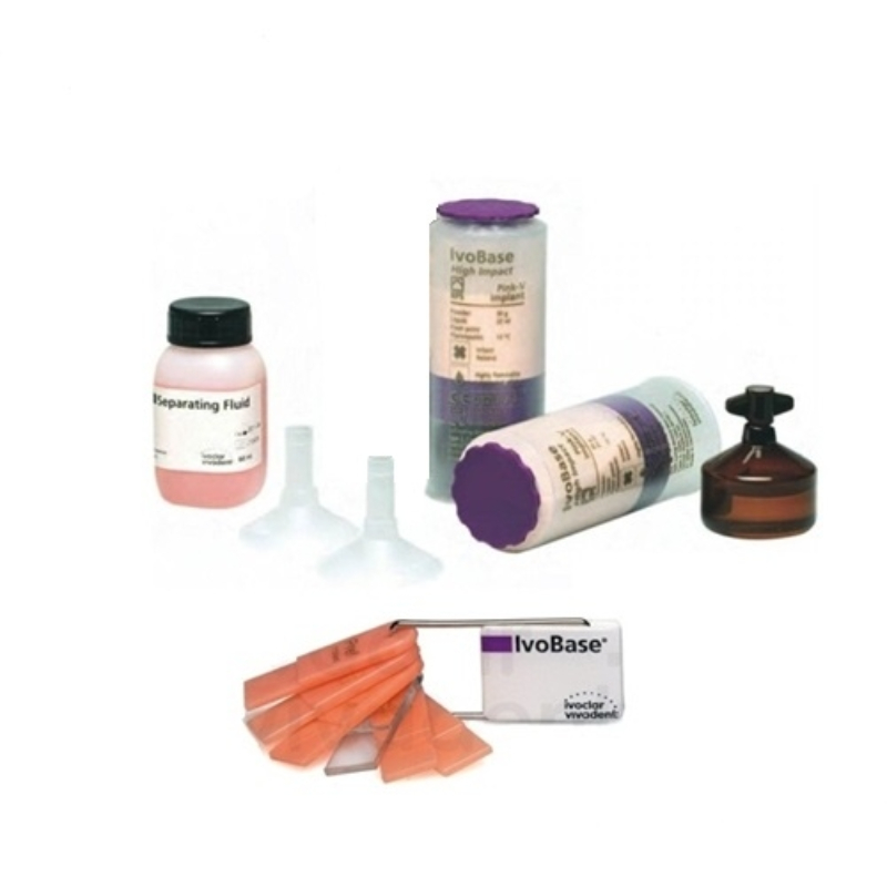 IvoBase Hybrid combines the qualitative benefits of heat-curing polymers with the processing features of a self-curing polymer and thus creates a new category of denture base resins. The PMMA-Based material is processed in the IvoBase injector. The material complies with EN ISO 20795-1.