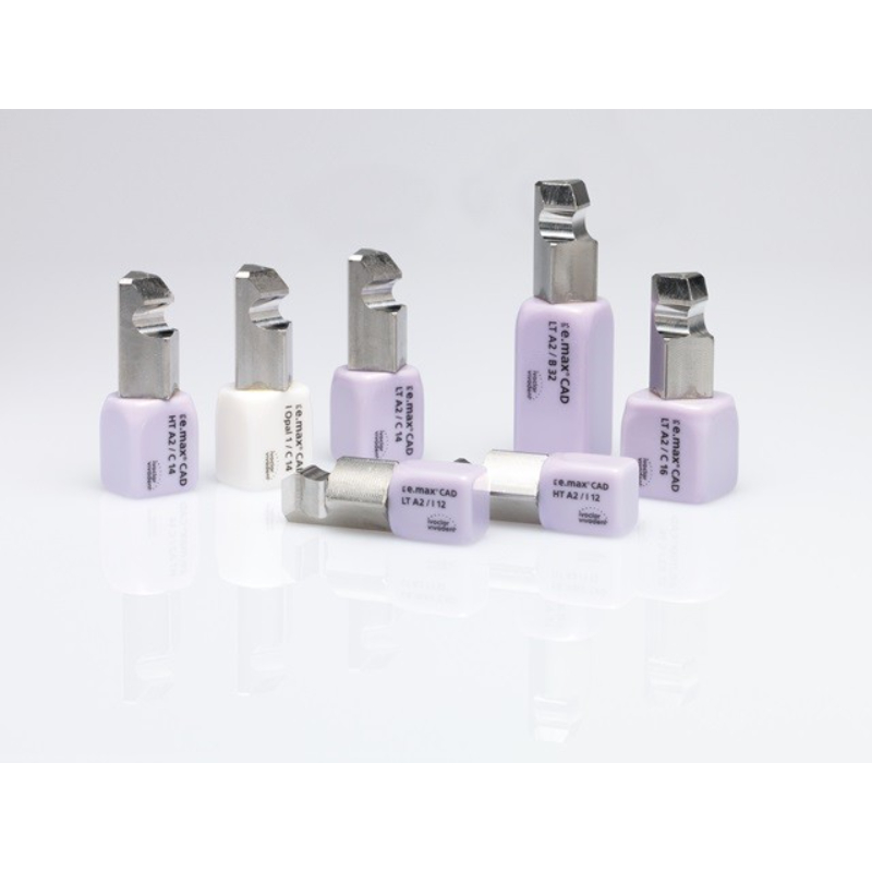 The IPS e.max CAD blocks for chairside processing are available in 16 A-D and four modern Bleach BL shades. They are available in two levels of translucency and two sizes. There are also an even more opaque blocks for the fabrication of frameworks (layering technique) in the laboratory.