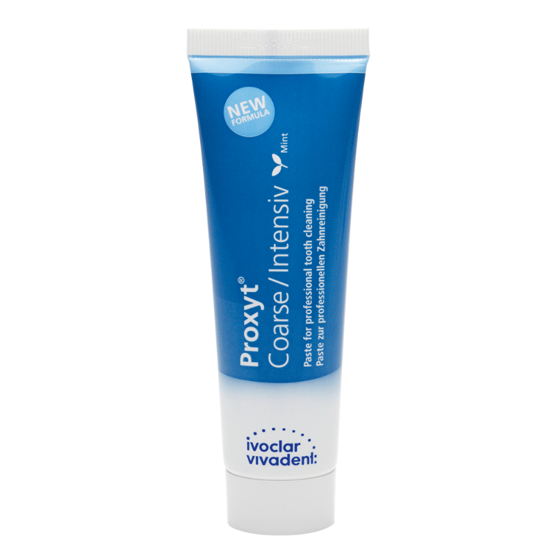 The fine Proxyt polishing paste is exceptionally gentle on dentin and enamel as well as on the surfaces of high-quality composite and ceramic restorations [1-7].