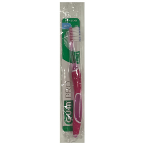 G.U.M Technique Pro The GUM PRO toothbrush is expertly crafted, offering exceptional care for teeth and gums, from its ergonomic grip to its precision tip. Its innovative design allows it to reach below the gumline, effectively targeting the sulcus area to reduce bacteria and plaque buildup. Explore how its tapered bristles and user-friendly grip can enhance your patients’ daily brushing routine for healthier teeth and gums.