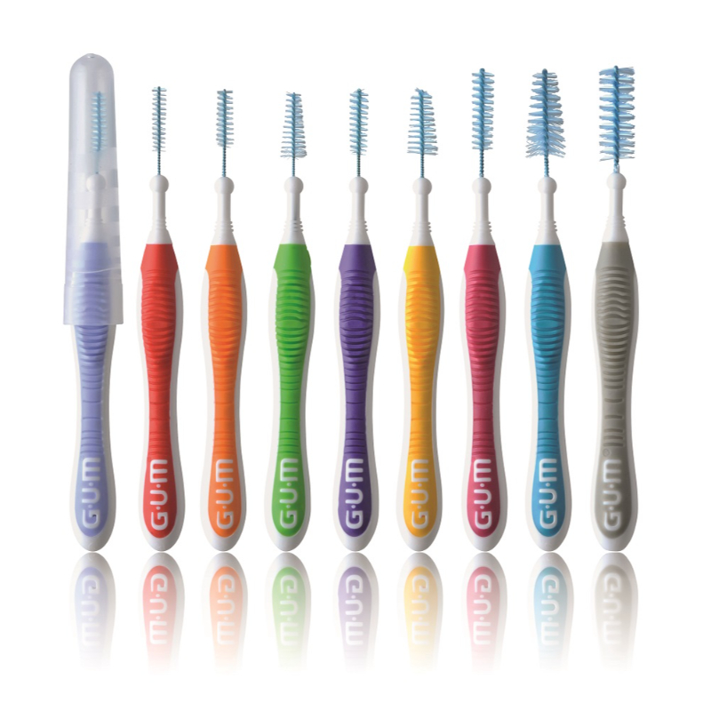 GUM Trav-lers are reusable interdental brushes that easily clean in-between the teeth and around dental appliances where your toothbrush can’t reach. With special anti-bacterial bristles for superior plaque removal and an ergonomic handle, they are ideal for everyone – especially adults and children with wide gaps between the teeth, orthodontic braces, sensitive or bleeding gums, implants or bridges. GUM Trav-lers are easier to use than floss and can be more effective.